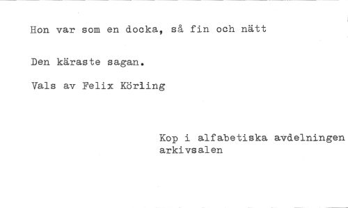 //// Hon var som en docka, så fin och nätt Den käraste sagan. //// Vals av Felix Körling //// Kop i alfabetiska avdelningen arkivsalen ////