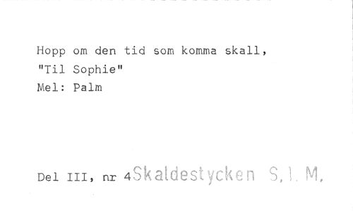 //// Hopp om den tid som komma skall, "Til Sophie" //// Mel: Palm //// Del III, nr 4Skaldest ycken S, M, ////