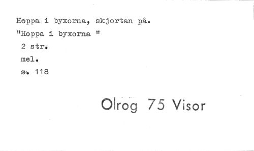 //// Hoppa i byxorna, "Hoppa i byxorna 2 str, skjortan på. //// mel. tt //// s-4 118 //// Olrog 75 Visor ////