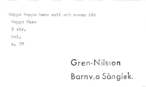 //// Hoppe hoppe hare satt och mumsa bär Hoppe Hare //// 2 str. //// s. 39 //// Gren-N ilsson //// Barnv.o Sån glek. ////
