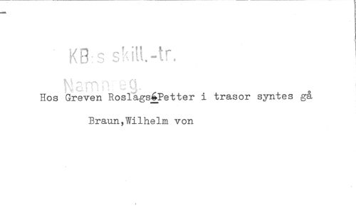 //// KR,s s!fltt.-tr. //// Hos Greven Roslags4Petter i trasor syntes gå Braun,Wilhelm von ////