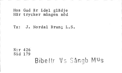 //// Hos Gud är idel glädje //// Här trycker mången nöd //// Tx: J. Nordal Brun; L.S. //// N:r 426 //// Sid 179 //// Bibel r Vs Sångb Mus ////