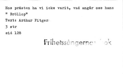 //// Hos prästen ha vi icke varit, vad angår oss hans " Bröllop" //// Text: Arthur Fitger: //// 3 str //// sid.128 //// Vril etss; ////