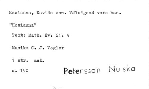 //// Hosianna, Davids son» Välsignad vare han. //// "Hosianna" //// Text: Math. Ev. 21. 9 //// Musik: G. 3. Vogler 1 str. mel. //// s. 150 Peter s3c n Nu s'e,a ////