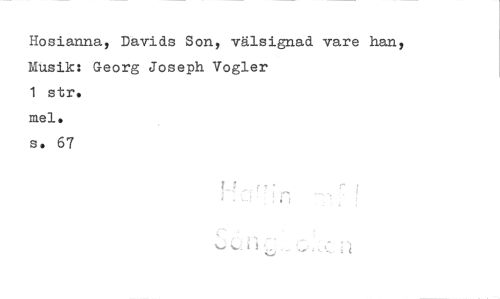 //// Hosianna, Davids Son, välsignad vare han, Musik: Georg Joseph Vogler //// 1 str. //// mel. //// s. 67 ////