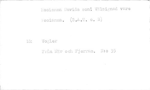 //// hosianna Davids son: Välsignad vare osianna. ( o. B) //// Vogler //// Från När och Fjerran. N:o 35 ////