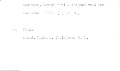 //// Hosianna, Davids son: Välsignad vare han nosianna 2rio U.A.0. B. //// 1,1e Vogler //// Ålard, Lyrko o. Skolsgalger U. 1. ////