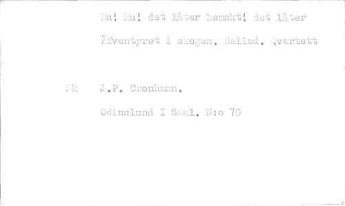 //// nu! Lu! det låter hemskt! det låter Yfventyret i skogen. Ballad. .,kv.artett //// Cronhamn. //// Odinslund 1 Sam1, N:o 70 ////