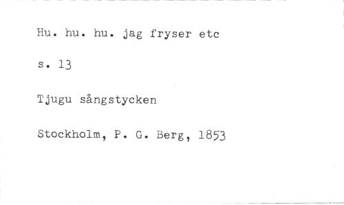 //// Hu. hu. hu. jag fryser etc s. 13 //// Tjugu sångstycken Stockholm, P. G. Berg, 1853 ////