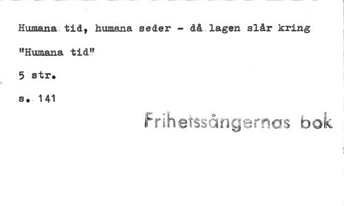 //// Humana tid, humana seder - då lagen slår kring "Humana tid" //// 5 str. //// s. 141 //// Fri h etss. fig -:rr a, bok ////