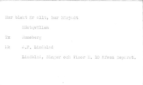 //// Hur blekt är allt, hur härjadt Höstqvällen //// Tx .kuneberg //// lic A.F. Lindblad //// Lindblaa, Sånj,er ocL Visor E. 10 äfven Separat, ////