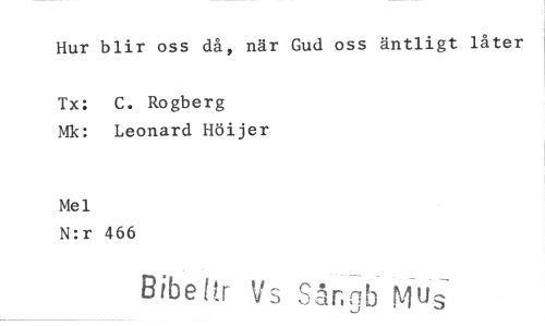 //// Hur blir oss då, när Gud oss äntligt låter //// Tx: C. Rogberg //// Mk: Leonard Höijer //// Mel //// N:r 466 //// Bibeltr Vs Sår.nb Mus ////
