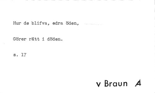 //// Hur de blifva, edra öden, Görer rätt i döden. //// s. 17 //// v Braun ////