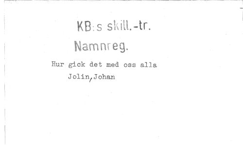 //// KBs skit.-tr. //// Namnreg. //// Hur gick det med oss alla Jolin/Johan ////