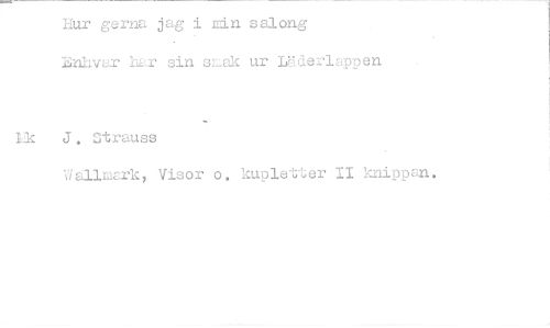//// hur gerna jag i nin salong //// Bnhvar har sin sn.åk ur WderlElppen //// Ek J. Strauss //// Wall=k, Visor o. kupletter II knippen. ////