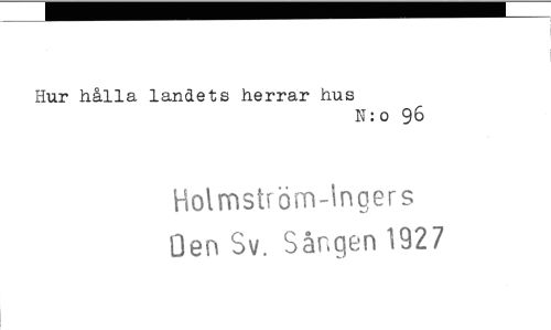 //// Hur hålla landets herrar hus //// N:o 96 //// Holmström-Ingers //// Oen Sv. Sången 1927 ////
