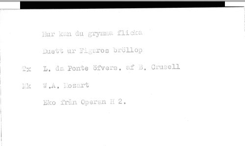 //// Hur klui du grynina flicka //// Duett ur Fij2.ros bröllop //// 2x. L. da Ponte övers, af B, Grusel Lk W.A. U)zart, //// bko från Operan H 2. ////