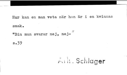 //// Hur kan en man veta när han är i en kvinnas smak. //// "Din mun svarar nej, nej- //// s.39 ////