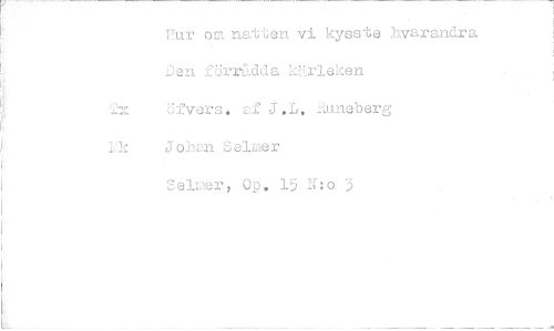 //// Vur om natten vi kysste hvarandra Den förrUcla kärleken Txövers, af J.L. Runeberg //// Ylc Job2n Selmer //// elmer, Op. 15 N:o 3 ////