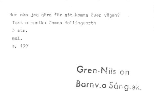 //// Hur ska jag göra för att komma över vägen? Text o musik: James Hollingworth //// 3 str, //// mel. //// s. 139 //// Gren-Nils on //// ilarnv.o Sc:In ////