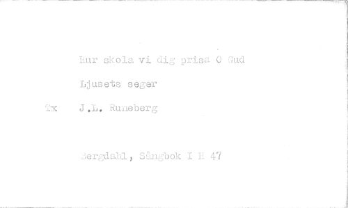 //// liur skola vi dig prisa 0 ud Ljusets seger //// Tx J.I. Runeberg //// Jergdahly Sångbok 1 II 47 ////