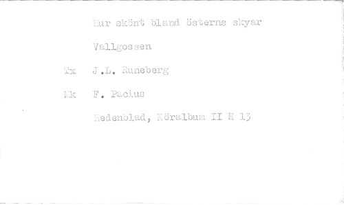 //// hur skönt bland österns skyar Vallgossen //// J.L. Runeberg //// Lk P. Pacius //// liedenblad, Köralbum II H 13 ////