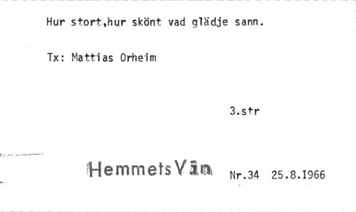 //// Hur stort,hur skönt vad glädje sann. Tx: Mattias Orheim //// 3.str //// IlemmetsVini Nr.34 25.8.1966 ////