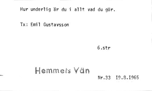 //// Hur underlig är du i allt vad du gör. Tx: Emil Gustavsson //// 6.str //// 1-4eillrnets //// Nr.33 19.8.1965 ////