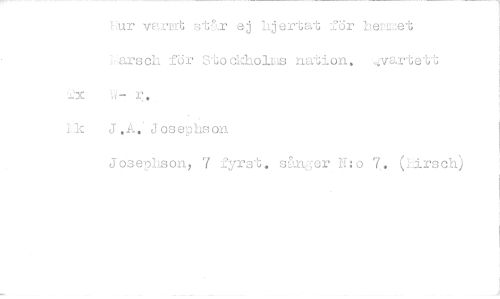 //// hur varrt sVr ej hjertat för hemmet Irsch för Stockholris nation. ,vartet 2x r, //// hk J.Å. Josephson //// Josephson, 7 fyrs. 7. (hirsoh) ////