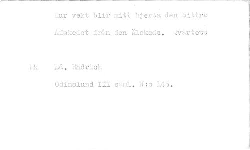 //// Lur vekt blir mitt 'j era den bittra //// Afsedet fran den Klakade. vartett //// Bädrich //// Odinslund III sar N:o 143. ////