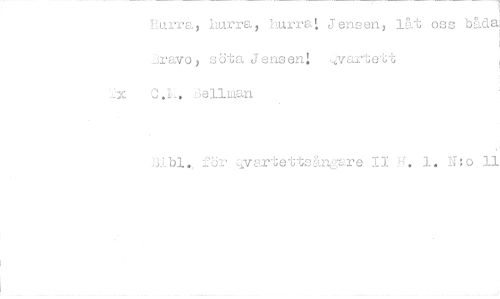 //// Hurra, hurra, hurra: Jensen, låt oss båda 3ravo, söta Jensen! .irartett //// C.L. Bellman //// ilibl, för civartettsngare ii Y. 1. N:o 11 ////
