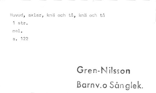 //// Huvud, axlar, knä och tå, knä och tå //// 1 str, mol, //// s, 122 //// Gren-Nilsson //// Barnv.o Sån glek. ////