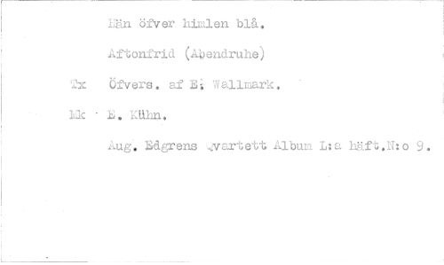//// Htln öfver himlen blå. //// Aftonfrid kpendruhe) 2z Öfvere. a± Bi Walimark. 1k ..B, E:Uhu. //// Aug. dgrens ',,yartett Albun L:a häft.U:o D. ////