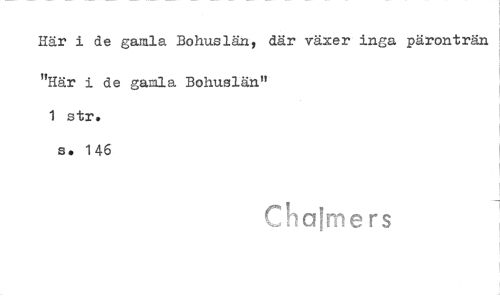 //// Här i de gamla Bohuslän, där växer inga päronträn //// "Här i de gamla Bohuslän" 1 str. //// s. 146 //// Chalmers ////