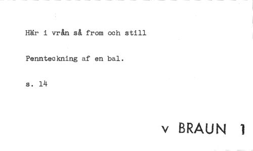 //// Här i vrån så from och still Pennteckning af en bal. //// s. 14 //// v BRAUN ////