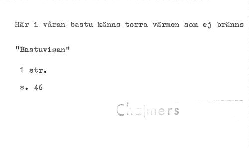 //// Här i våran bastu känns torra värmen som ej bränns ' "Bastuvisan" //// 1 str. s. 46 ////