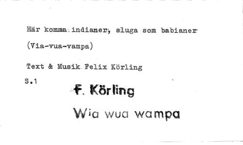 //// Här komma indianer', slaga som babianens (Via-vua-vampa) //// Text & Musik. Felix Körling //// s.1 f. larting //// \Nia wua wampa ////