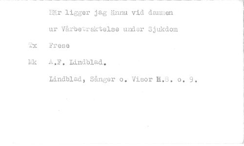 //// 12x Här ligger jag ännu vid dammen ur Vårberaktelse under Sjukdom Frese //// Lk A.F. Lindblad. //// Lindblad) Sånger o. Visor ILS. o. ////