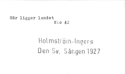//// Här ligger landet //// N:o 42 //// Pkolmströrn-ingers //// Oen Sv, Sången 1927 ////