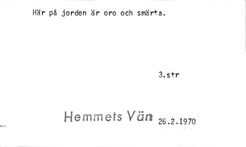 //// Här på jorden är oro och smärta. //// 3.str //// Hemmets Vän 26.2.1970 ////