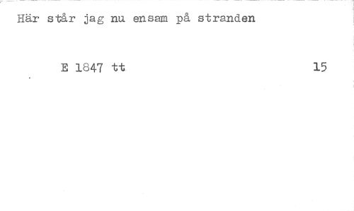 //// Här står jag nu. ensam på stranden //// E 1847 tt 15 ////