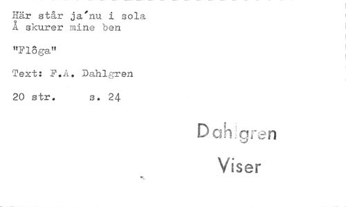 //// Här står ja'nu 1 sola Å skurer mine ben //// "Fl öga" //// Text: F.A. Dahlgren 20 str. s. 24 //// D ah gren //// Viser ////