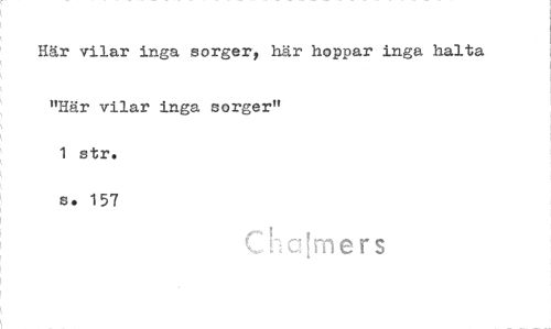 //// Här vilar inga sorger, här hoppar inga halta //// "Här vilar inga sorger" 1 str. //// so 157 //// vers ////