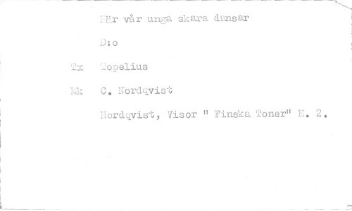 //// 1Kr vår unga skara dansar //// J:o //// 2x 2ooelius //// C. Nordqvis-i; //// Uordqvist, Visor " Finska Toner" H. 2. ////