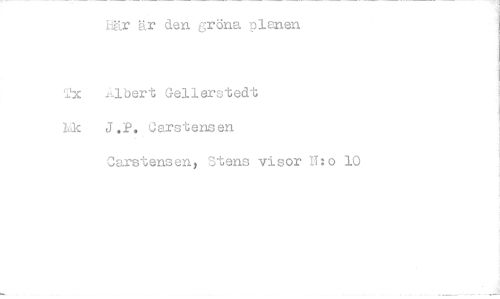 //// Lär är den gröna plenen //// xAlb rt Gellerstedt //// kk J.P. earstensen //// Carstensen, Stens visor H:o 10 ////