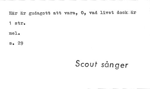 //// Här är gudagott att vara, 0, vad livet dack:är 1 stro //// mel. //// s. 29 //// Scout sånger ////