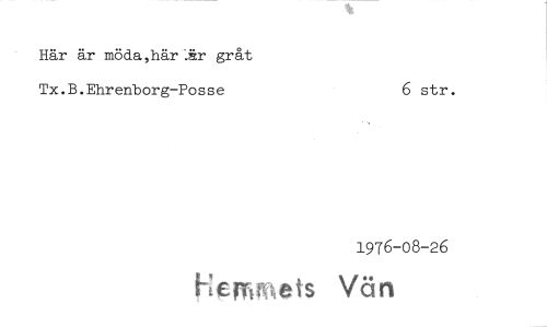 //// - Här är möda,härAr gråt //// Tx.B.Ehrenborg-Posse 6 str. //// 1976-08-26 //// H41Totkets Vän ////
