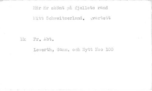 //// Här är skönt på fjellets rand Igitt Schweitzerland. ,sartett //// Lic Fr. Abt. //// Lewerth, Garam. och Nytt N:o 100 ////