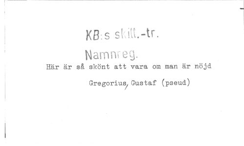 //// KB:s //// Namn eg. //// Här är så skönt att vara om man är nöjd Gregorius/ Gustaf (pseud) ////