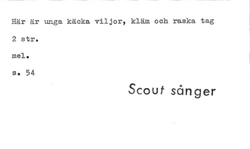 //// Här är unga käcka viljor, kläm och raska tag //// 2 str. mei. //// s. 54 //// Scout sånger ////